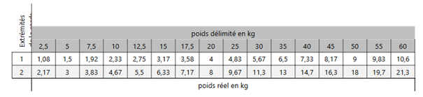 - Les Abacs du manuel d'utilisation nous permettent de connaître les charges réelles