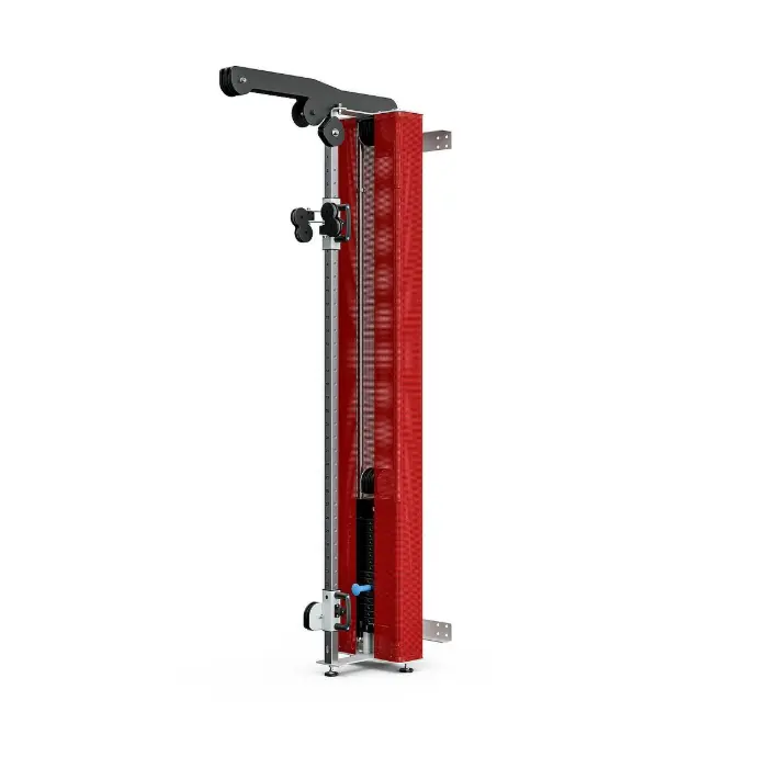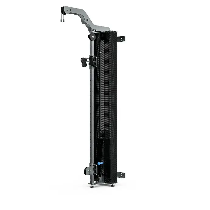 Réglable sur toute la hauteur de la colonne de 40 à 185cm (par paliers de 5cm), elle peut être accessoirisée en option avec différents types d'options, de barres, sangles, poignées pour travailler les membres supérieurs, les membres inférieurs et le tronc.